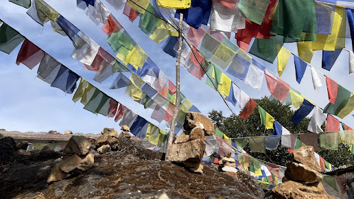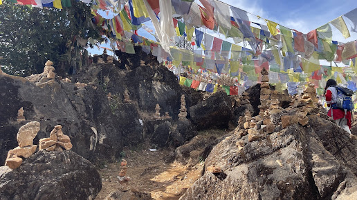 Cultural Sites: Phulchoki Mai shrine and prayer flags along the trail.